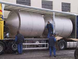 Expedice nadrozměrného nákladu. Nerezové cyklony a kontejnery určené pro Egorievsk Rusko a Szczecinek Polsko.