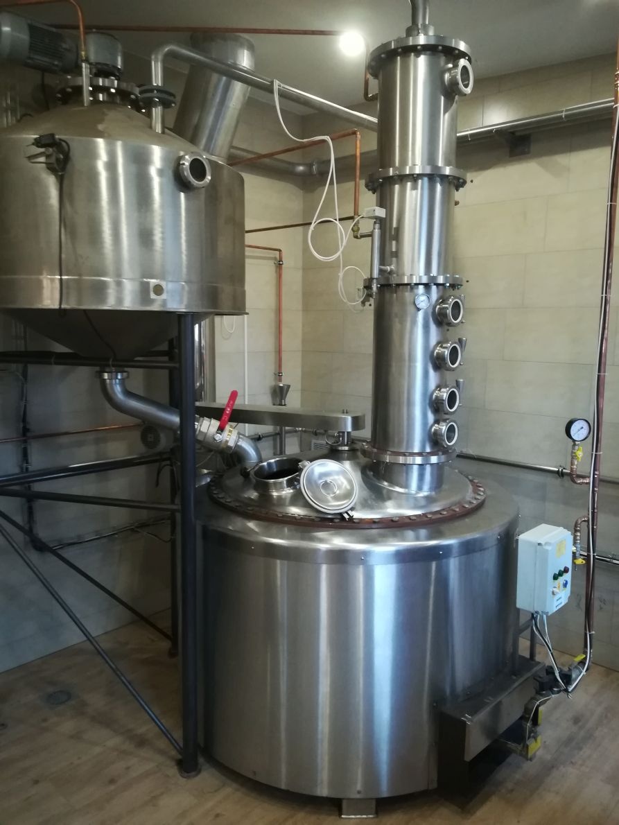 Pálenice je vybavena jednokotlovou technologií s rektifikační nástavbou a destilačním kotlem o užitném objemu 600 litrů. Vytápění je přímé zemním plynem, vakuová doprava kvasů s předehřevem odpadní oteplenou vodou, ovládácí panel s digitálním zobrazením hlavních teplot a alarmovým hlášením teploty destilátu, automatické chlazení destilátu. Součástí pálenice je odpeckování výpalků a ověřená nádoba na úkap+dokap.